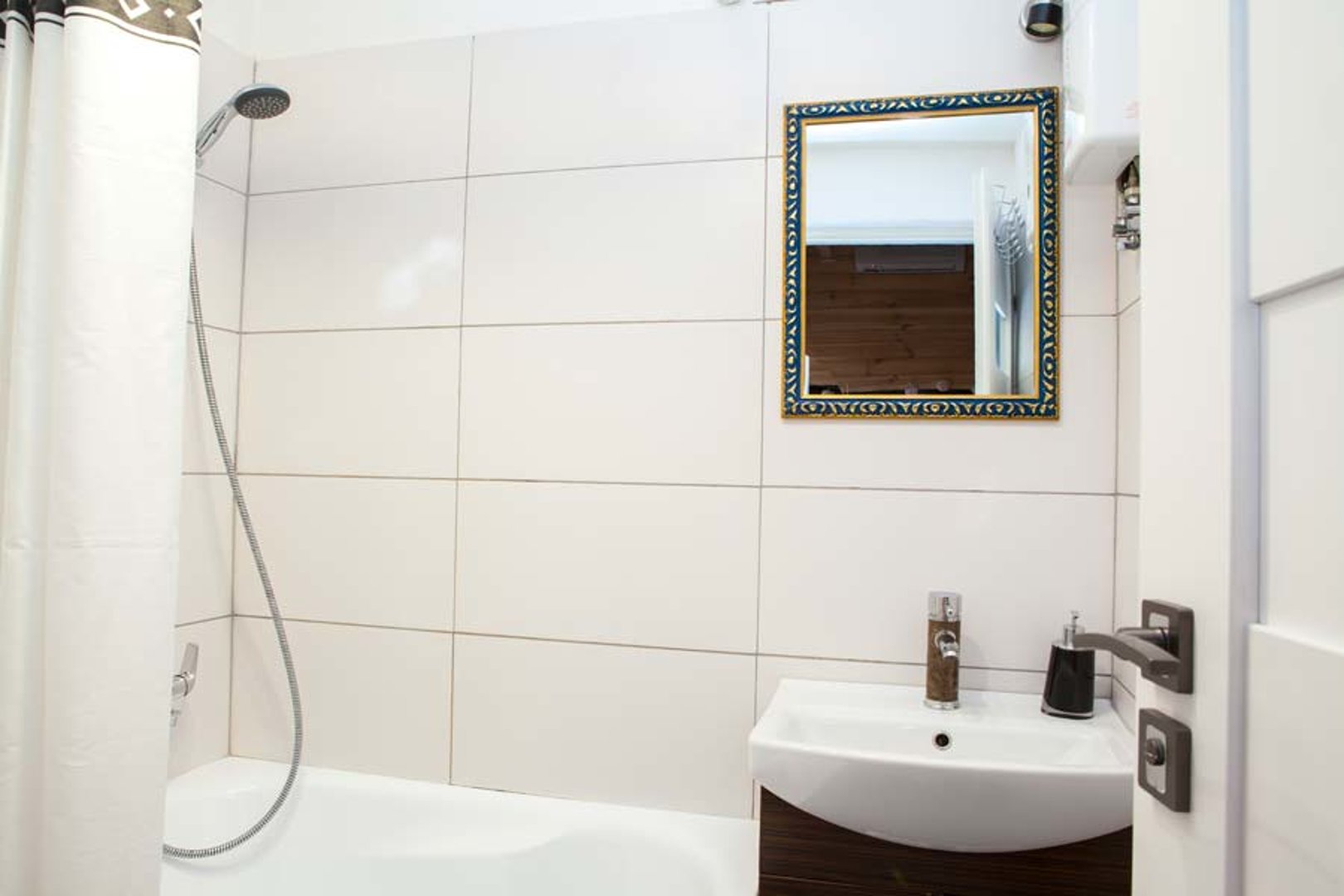 Komfortowy apartament z oddzielnym wejściem, wyposażonym aneksem kuchennym i łazienką z prysznicem. Nowocześnie urządzony, idealny dla pary lub na pobyt dla jednej osoby. Przestrzeń zewnętrzna ze stołem i ławką. Darmowe WiFi oraz parking.